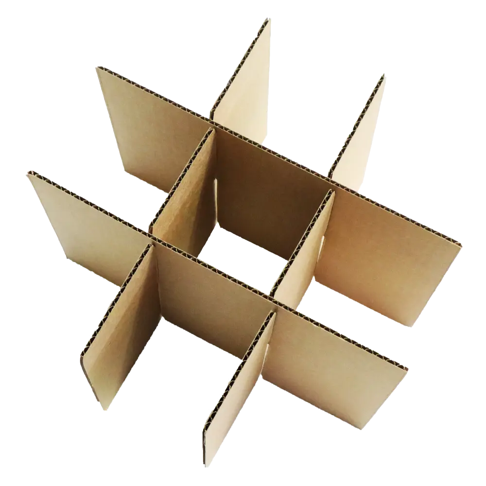 Sekat (partition) biasanya digunakan dalam box yang berisi beberapa item serupa — seperti botol, gelas, toples, atau produk elektronik kecil — guna mencegah kontak langsung antar produk. Desainnya bisa disesuaikan berdasarkan ukuran dan jumlah produk yang dikemas, dengan potongan slot yang saling mengunci satu sama lain membentuk kisi-kisi kokoh.